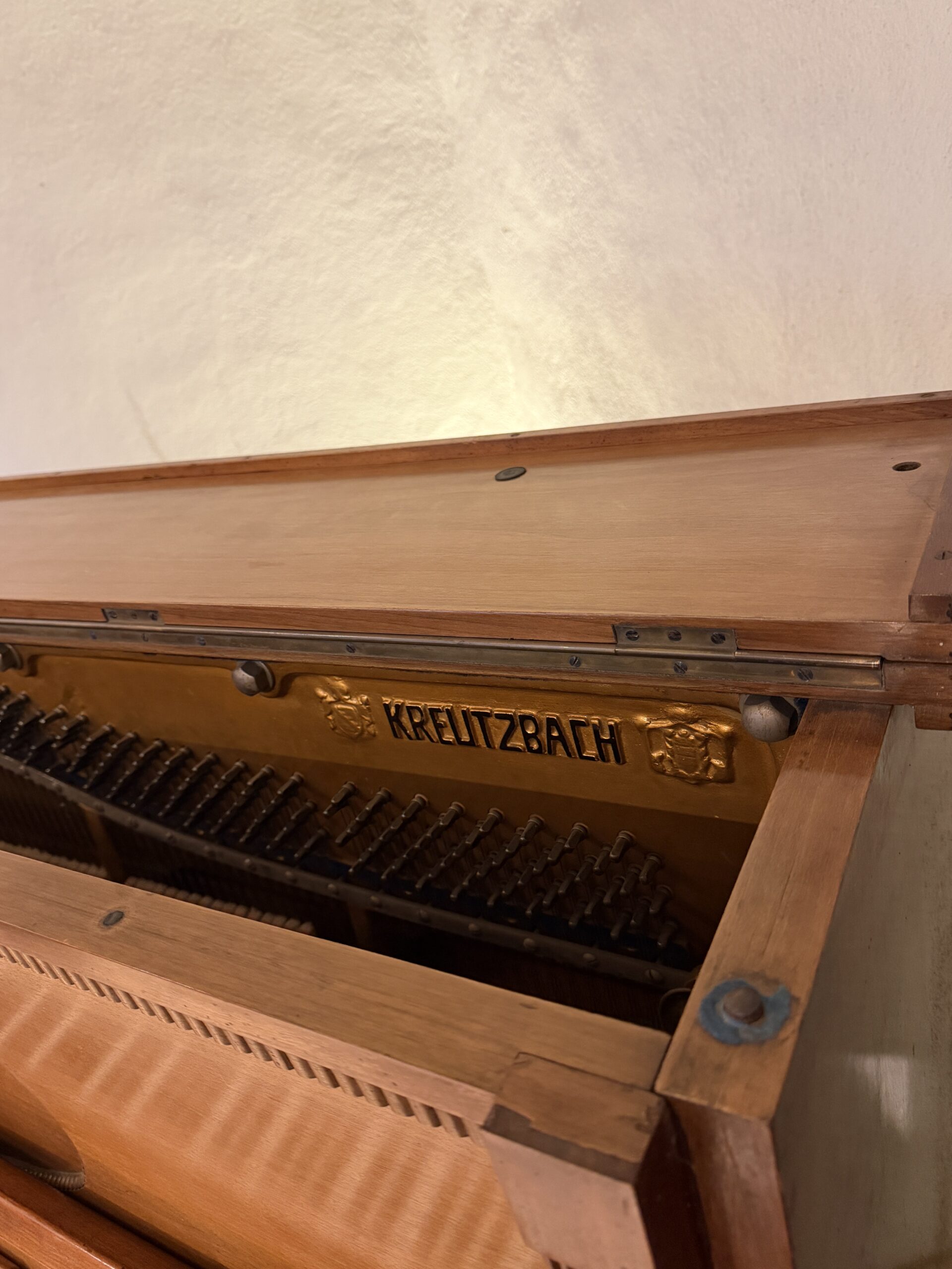 Ein sächsisches Original mit gewaltigem Klang Dieses außergewöhnliche Klavier der Leipziger Hof-Pianofortefabrik Julius Kreutzbach (Modell 130) ist ein Geheimtipp für Kenner. Mit seiner imposanten Bauhöhe von 130 cm entfaltet es ein Bassvolumen und eine klangliche Tiefe, die viele moderne Kleinklavieren weit in den Schatten stellt. Das Gehäuse in klassischem Nussbaum verleiht jedem Raum eine warme, edle Atmosphäre.